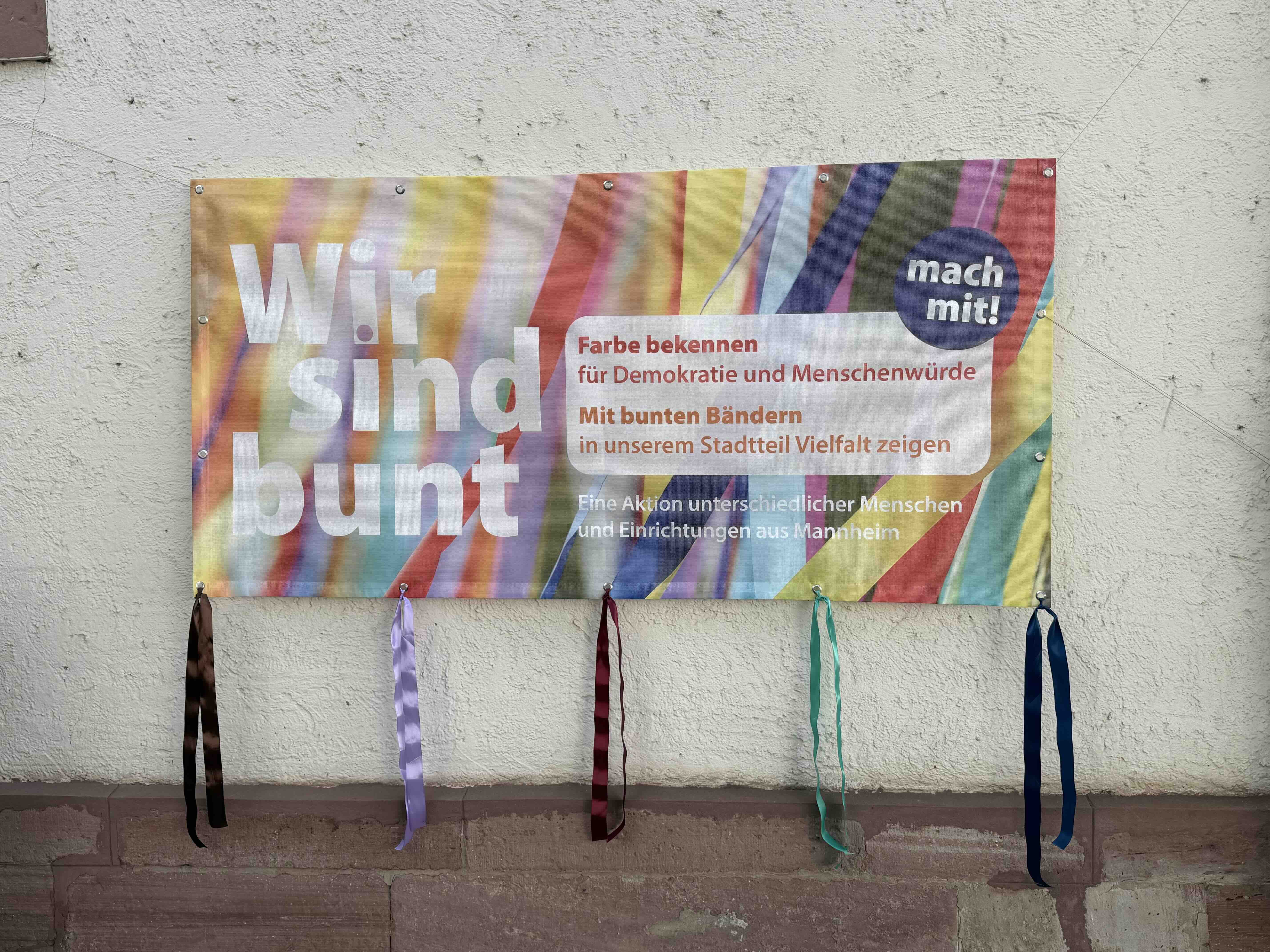 Gemeinsam Farbe bekennen - für Demokratie, Menschenrechte und respektvolles Miteinander - eine Ökumenisches Aktion mit bunten Bändern
