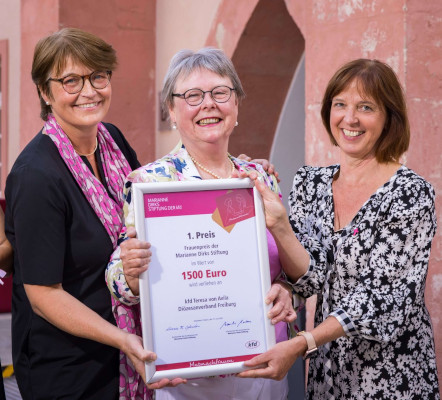 Im Vorfeld der Gründung haben wir uns intensiv mit der Frage befasst, wie die neue kfd-Gruppe heißen sollte. Nach eingehender Diskussion sind wir zu dem Ergebnis gekommen, dass wir die Gruppe nicht „lokalpatriotisch“ nach unserem Stadtteil benennen, sondern auch offen für Frauen aus Stadtteilen sein wollen, in deren Vorort es keine Gruppe gibt. Der Gruppenname sollte gleichzeitig auf eine Frau fallen, deren Vorname in der Gegenwart eine Rolle spielt - thematisch und was die Ziele betrifft. Es waren mehrere weibliche Heilige im Gespräch, die aus unserer Sicht passten.Gewinner des Mutmachpreis des kfd Bundesverbandes
